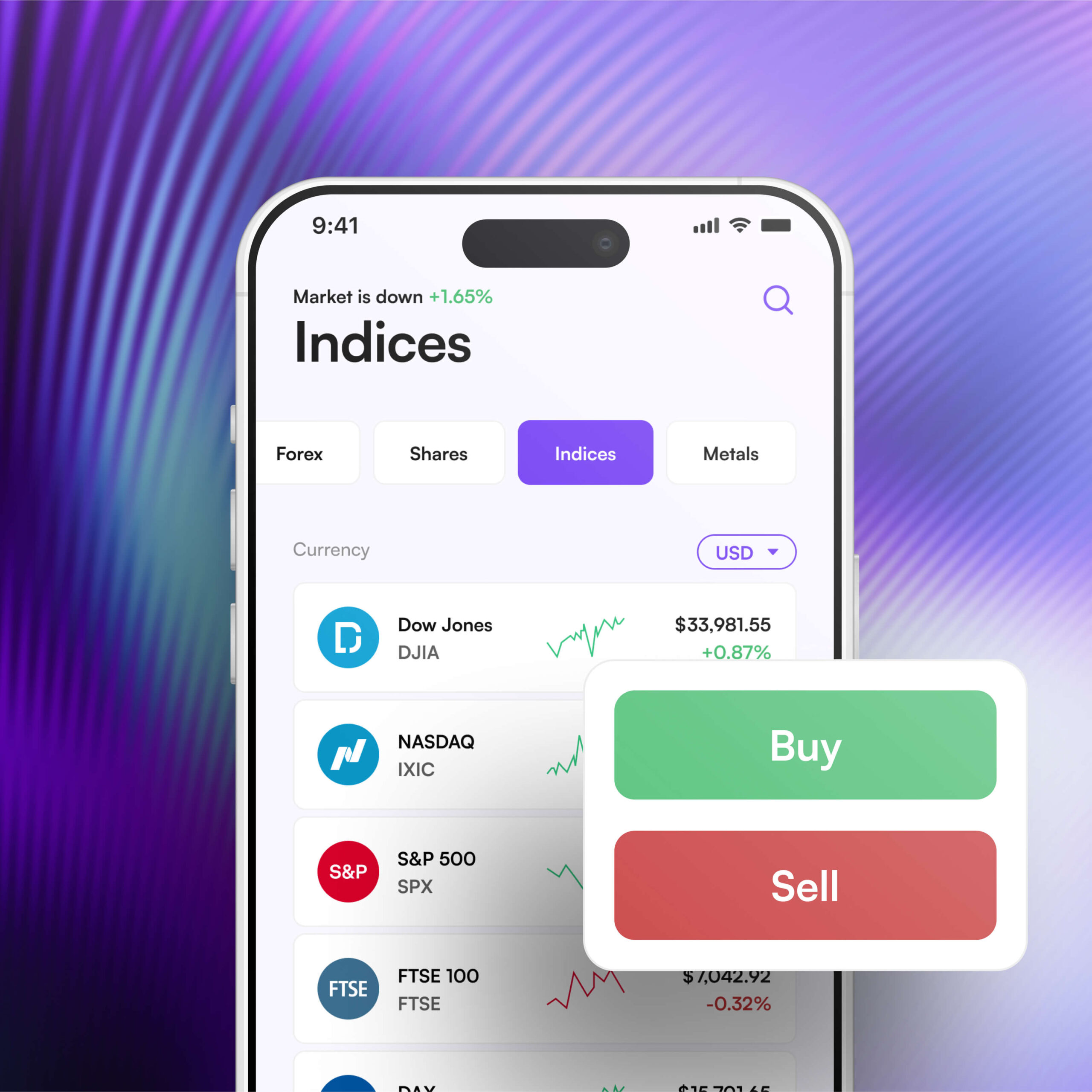 Savexa-এর মাধ্যমে, আপনি CFD-তে সূচক ট্রেড করতে পারবেন এবং বিশ্বজুড়ে শীর্ষস্থানীয় সূচকগুলির সাথে সম্পৃক্ত হয়ে বৈশ্বিক মার্কেটে আক্সেস করতে পারবেন। দক্ষ ট্রেডিং খরচের জন্য টাইট স্প্রেডের সুবিধা নিন এবং আপনার সম্ভাব্য লাভের পরিমাণকে সর্বাধিক করতে লিভারেজ ব্যবহার করুন। শক্তিশালী ঝুঁকি ব্যবস্থাপনা ব্যবস্থা দ্বারা সমর্থিত Savexa-এর নির্ভরযোগ্য প্ল্যাটফর্মে নিরাপদে ট্রেড করার সাথে সাথে উন্নত টুল এবং বিশ্লেষণাত্মক অন্তর্দৃষ্টির মাধ্যমে আপনার ট্রেডিং কৌশলকে উন্নত করুন।